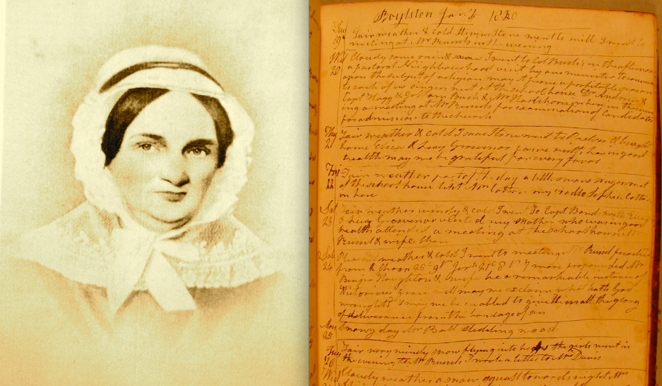 Left: Mary White circa 1840 (Boylston Historical Society); right, a page from White’s diary (University of Delaware Special Collections)